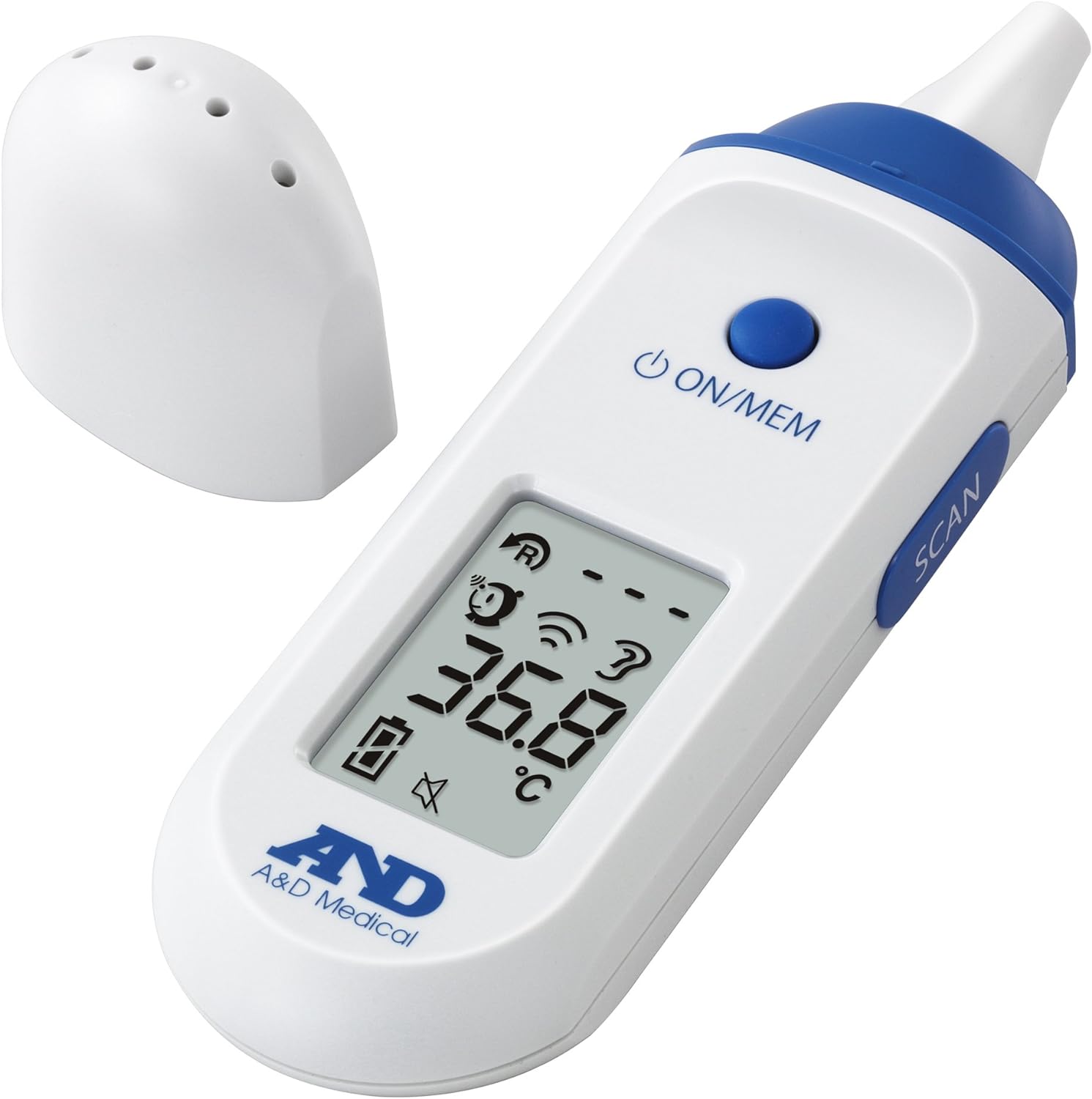 The A&D Medical UT-801 Multi-functional IR thermometer uses high-precision contactless technology to instantly deliver accurate results. Clinically approved accuracy for use in hospitals, medical institutions and the home. Ear and forehead dual mode testing, combining an ear and forehead reading to cross check results. Safer and hygienic than mercury and oral thermometers, convenient and easy to use for babies and children - even when sleeping. No disposable probe covers needed, simply clean the probe with a soft cloth. UT-801 has a 25 reading memory recall for temperature tracking.